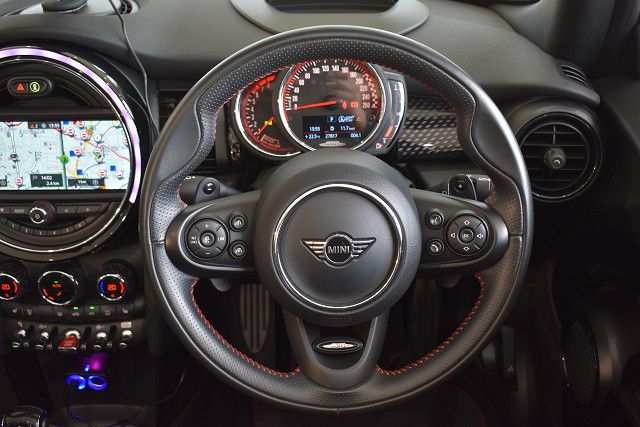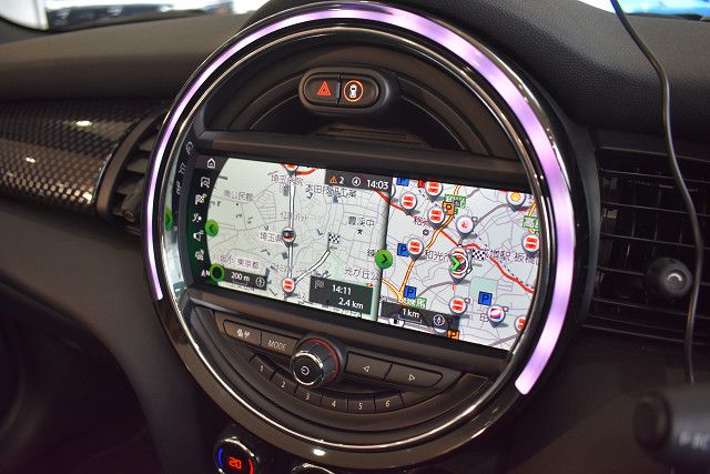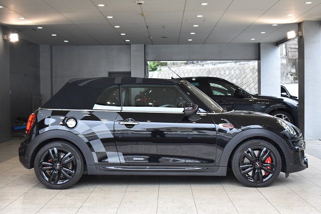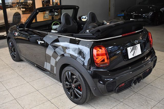 BRS1年保証付/純正ナビ/バックカメラ/ETC/JCWスポーツシート/パドルシフト付スポーツステアリング/LEDヘッドライト/17インチブラックアルミホイール/ユアーズ 電動オープンソフトトップ /チェッカーデカール